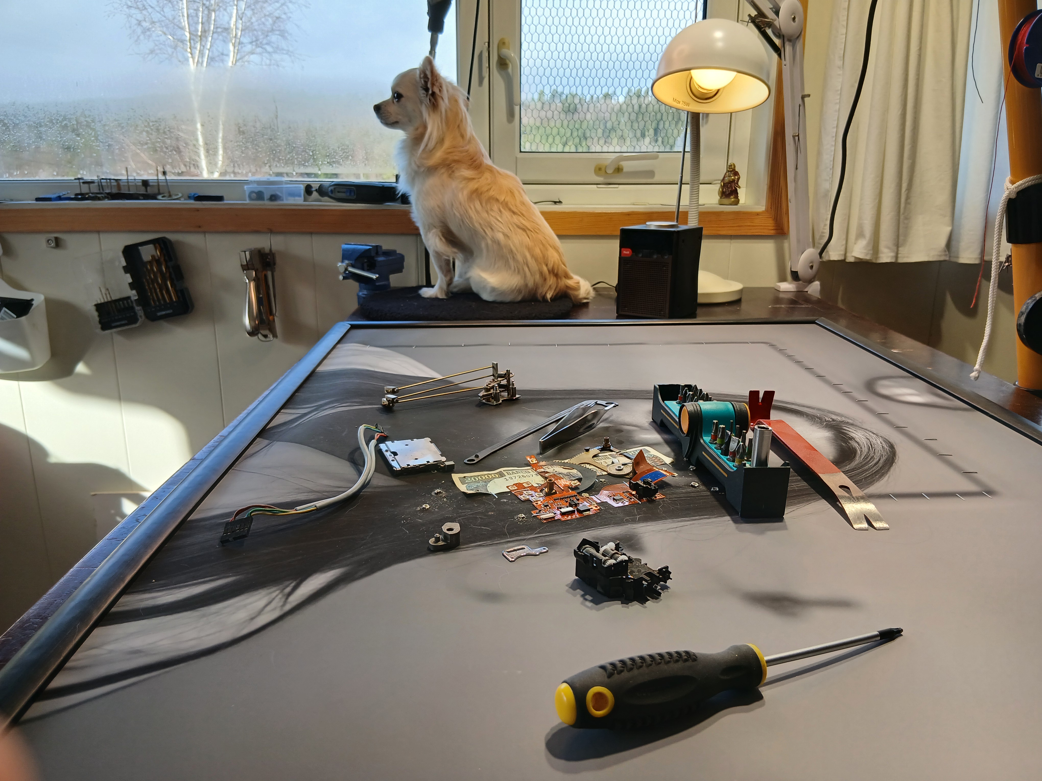HEROINE ii photo, wood, parts of three sewingmachines and two pocket watches photo, design and assembly: norway 2021 framed with art glass, 60x85 cm